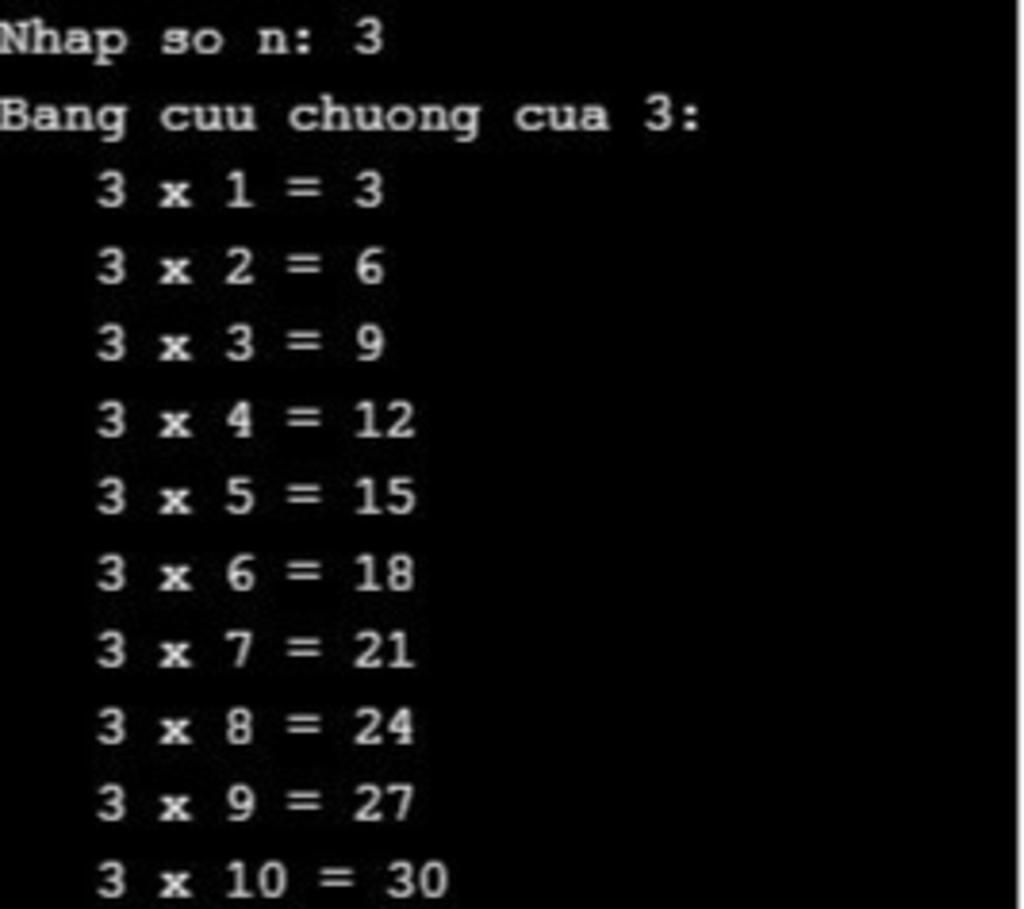 cout<<"BANG CUU CHUONG CUA "<<n;