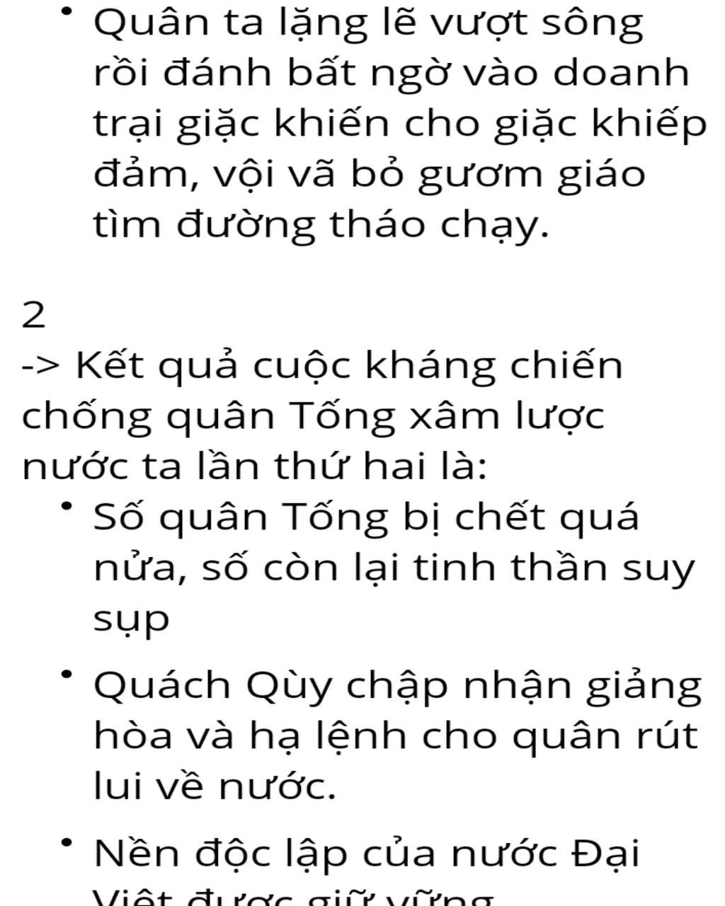 -> Kết quả cuộc kháng chiến chống quân Tống xâm lược nước ta lần thứ hai là: