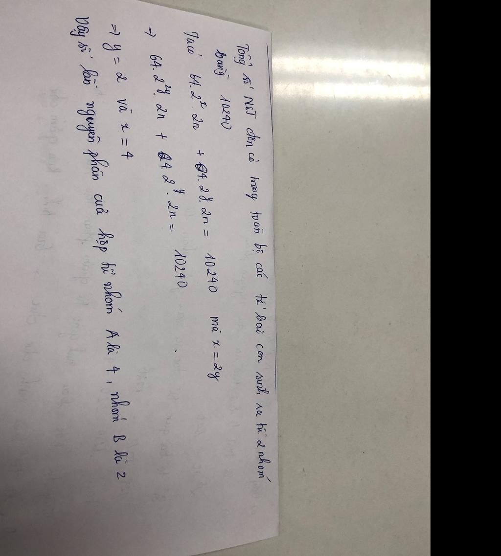 c. Gọi số đợt nguyên phân của mỗi hợp tử trong nhóm B là k. Suy ra số lần nguyên phân của hợp tử trong nhóm A là 2k. Theo giả thiết ta có phương trình: