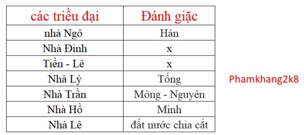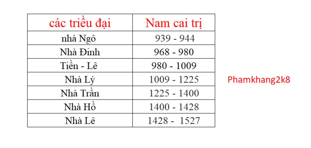 Lưu ý : câu trả lời chỉ từ thế kỉ X - XIX nhé