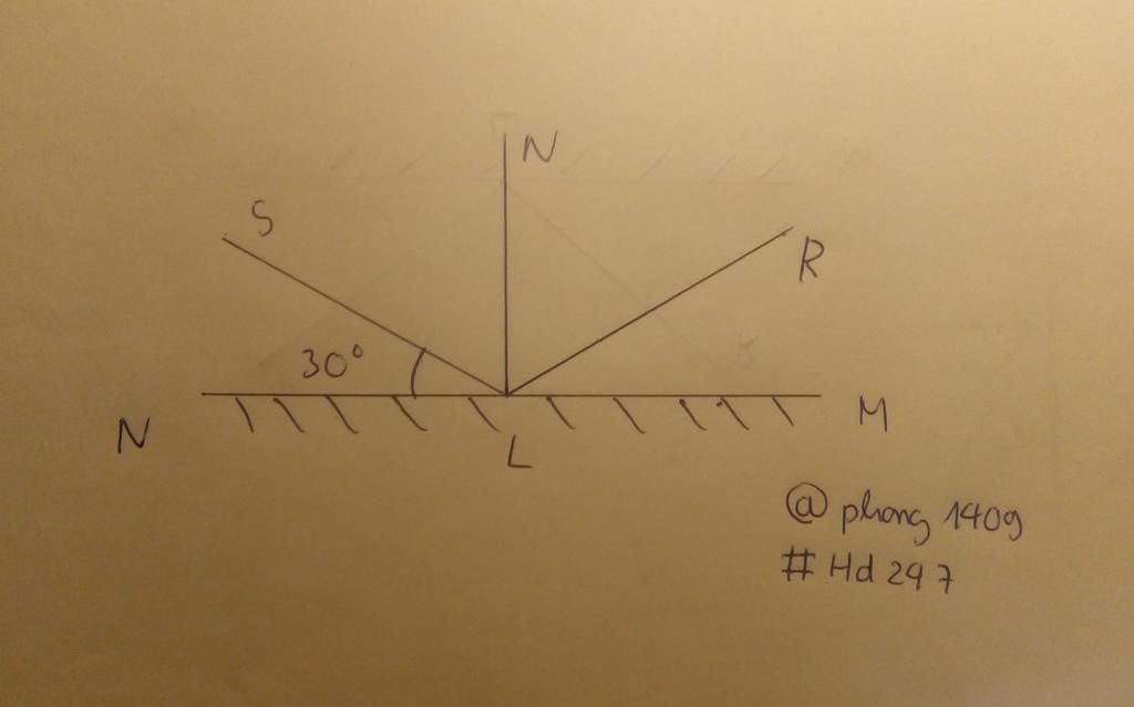 chiếu tia tới SL lên mặt gương phẳng MN và tia tới hợp với gương phẳng một góc 30° hãy tính giá trị của góc phản xạ