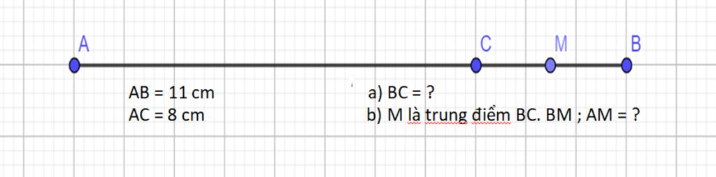 Cho đoạn thẳng AB=11cm,về điểm C trên đoạn thẳng AB sao cho AC=8cm