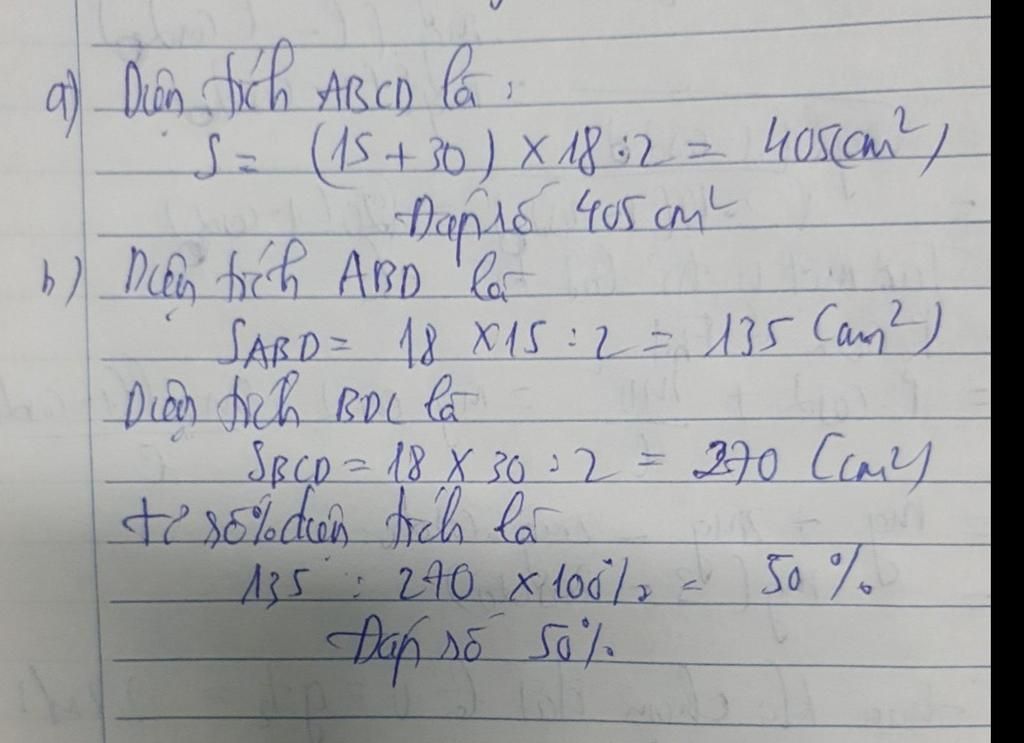 ( 15 + 30 ) x 18 : 2 = (405 cm2)