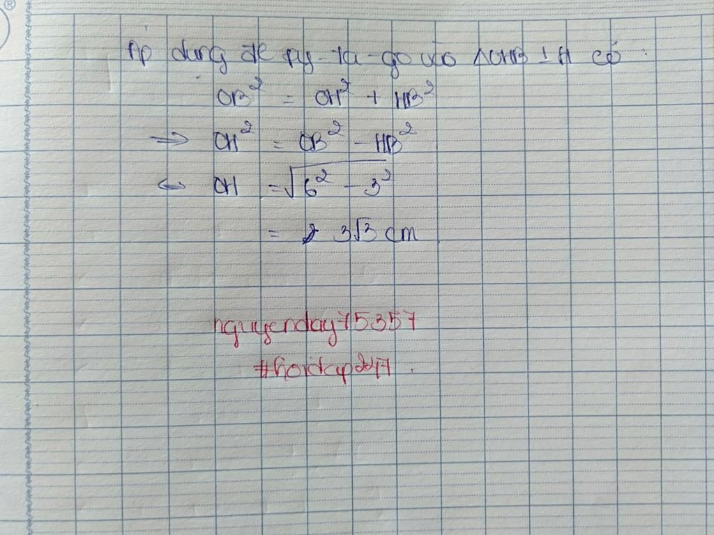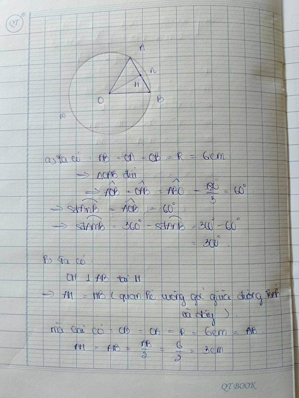 cho (O;6cm) dây AB=6cm. kẻ OH vuông góc với AB tại H