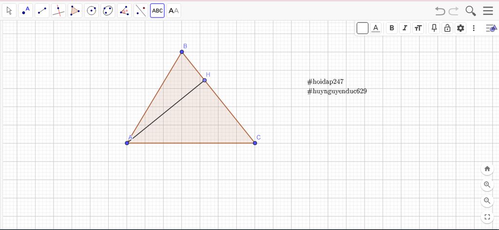 Cho tam giác abc AH vuông góc với BC( H thuộc BC) a. Chứng minh Tam giác AHB = tam giác AHC b. Tính Ab cho Ah=12 cm Bc=10cm