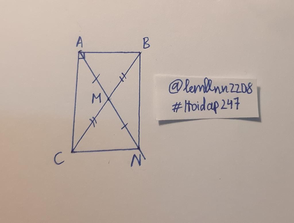 Cho tam giác ABC vuông tại A.Gọi M là trung điểm của BC .Trên tia đối của tia MA lấy điểm N sao cho M là trung điểm của AN