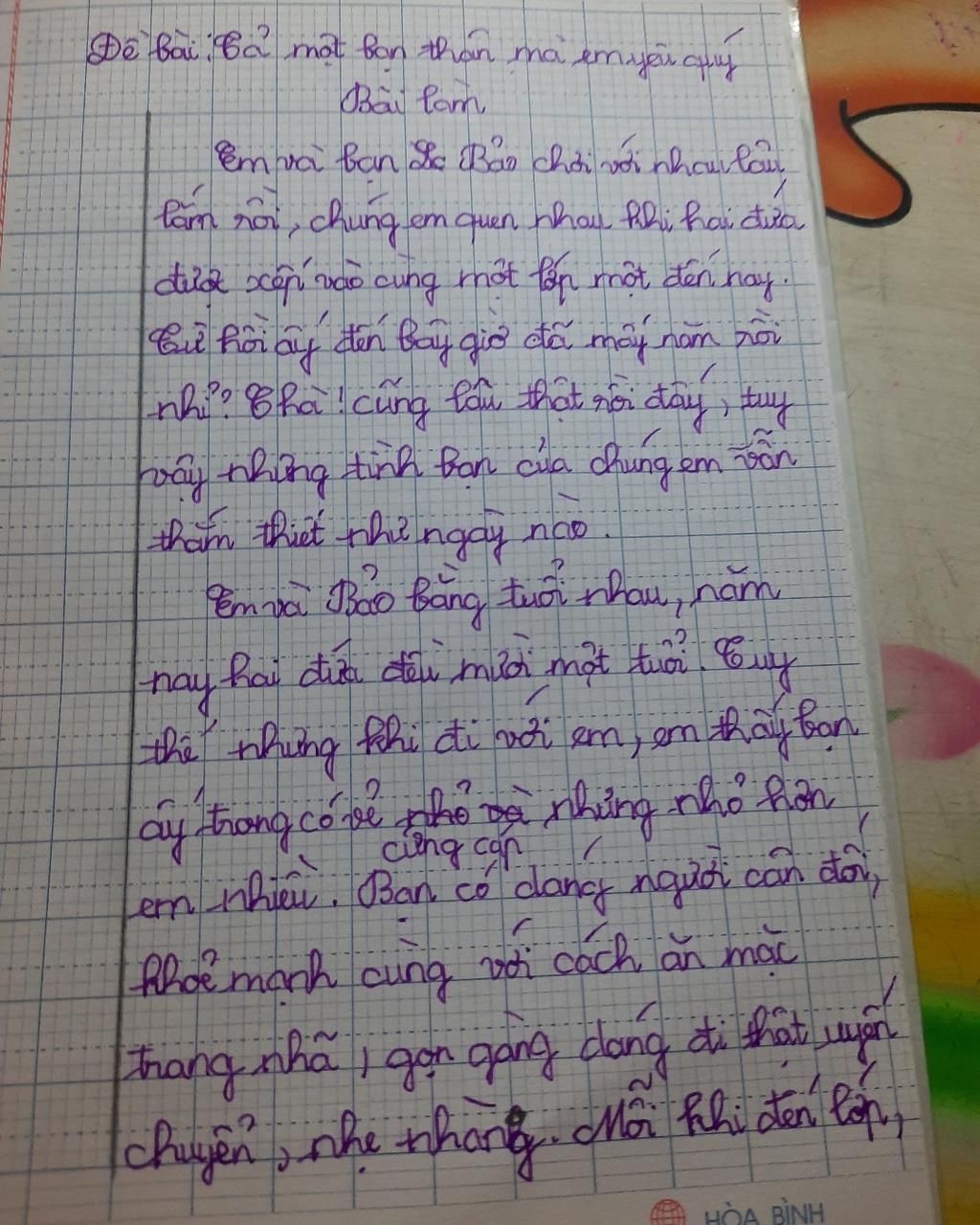 Đề bài: tả một người bạn mà em yêu quý