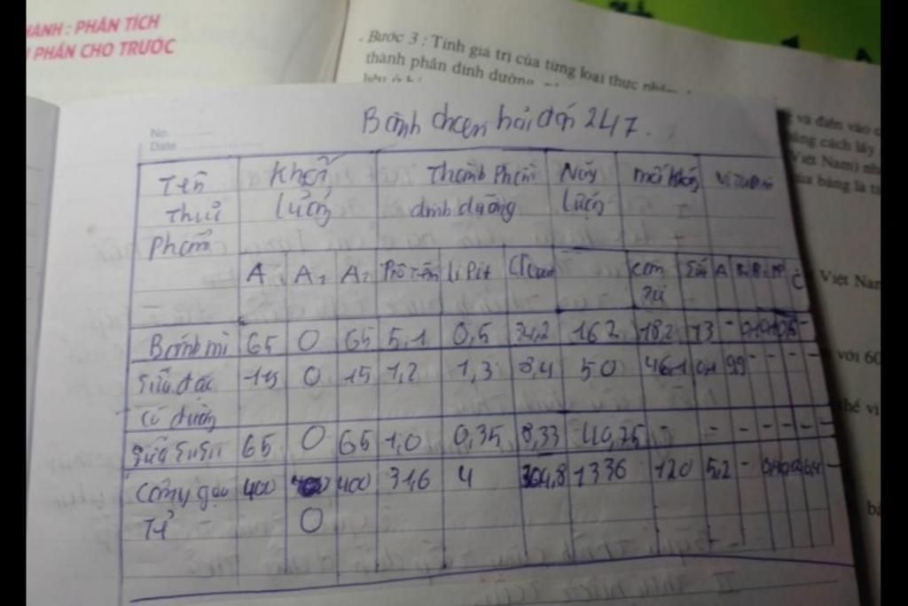 hãy lập khẩu phần ăn cho một người bình thường (bảng tang 118, 121 sgk sinh 8)