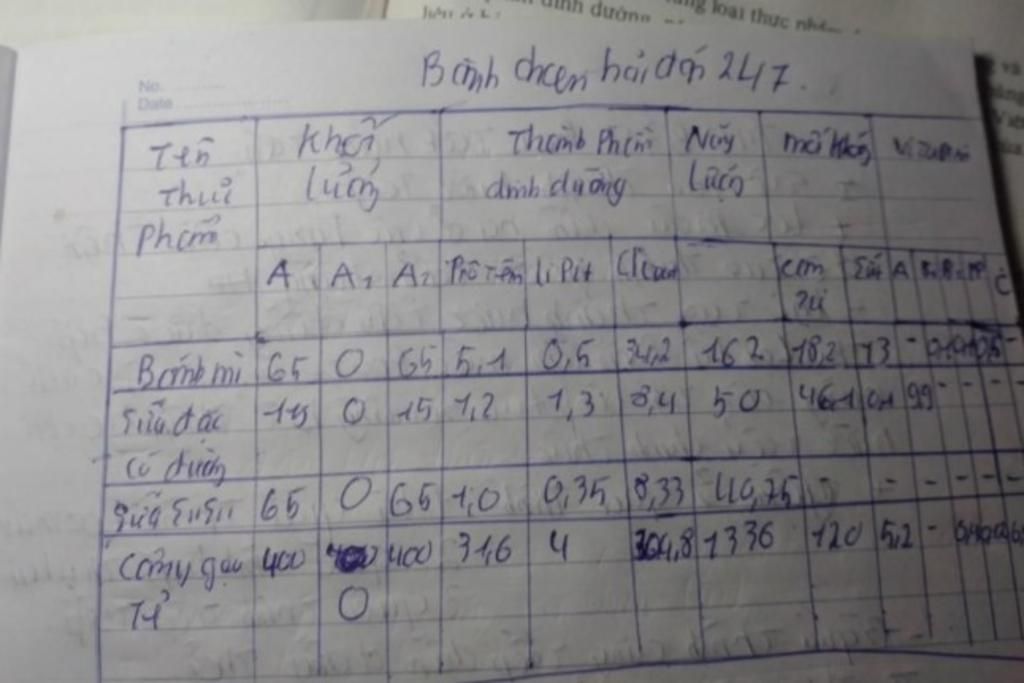Hãy xác định lượng thải bỏ A1, lượng thực phẩm A2 các thực phẩm dinh dưỡng như protein, lipit, gluxit, năng lượng cung cấp khi sử dụng 1 số thực phẩm