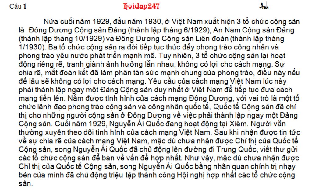 1.tại sao khi biết VN có `3` tổ chức Cộng sản. Quốc tế Cộng Sản lại cử Nguyễn Ái Quốc đứng ra để hợp nhất.