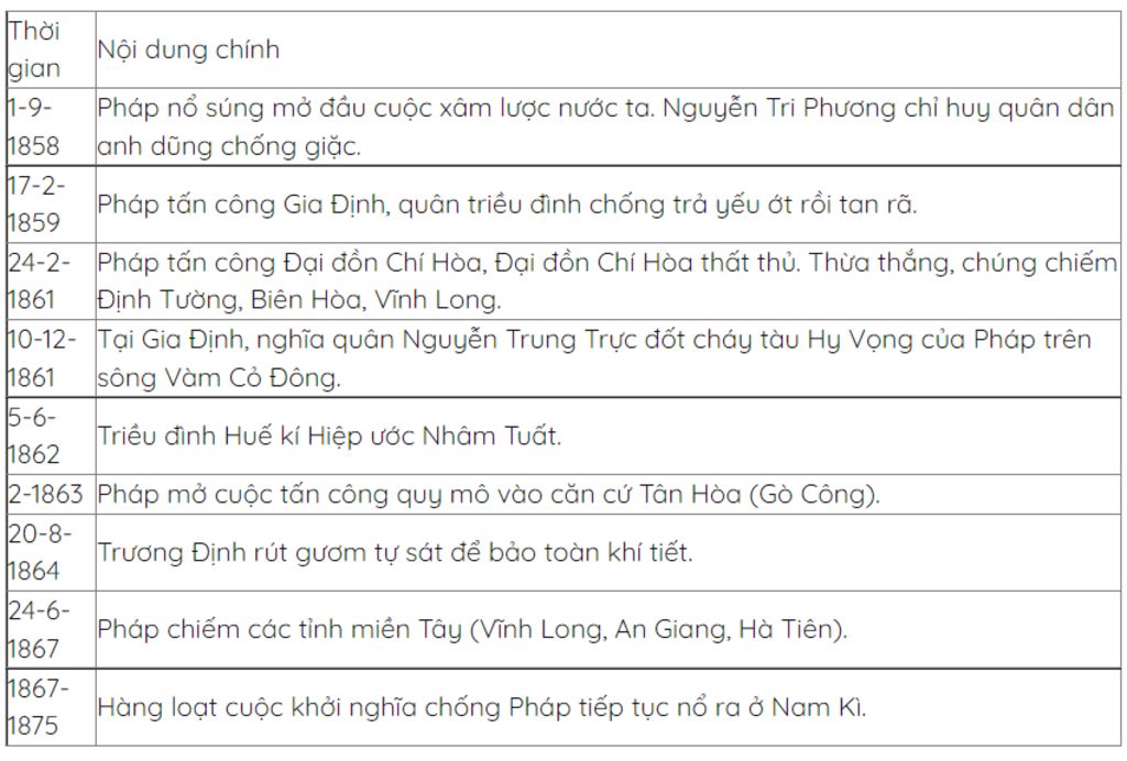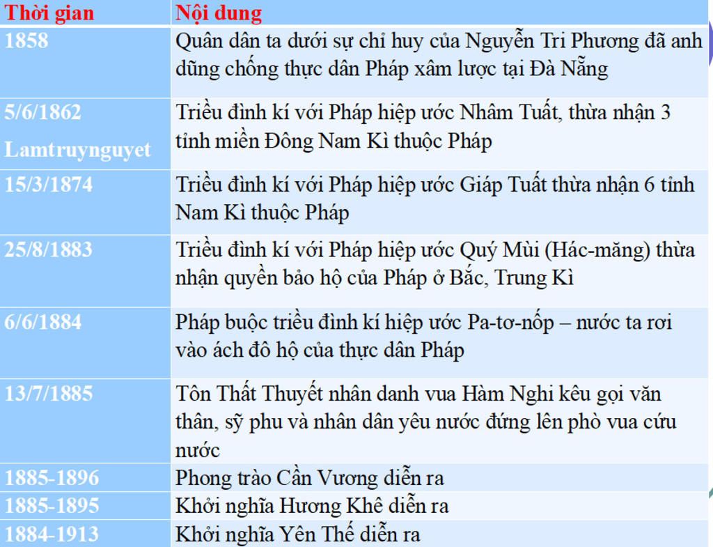 Lập niên biểu các cuộc khởi nghĩa và phong trào chống Pháp của nhân dân ta từ năm 1858 đến đầu thế kỷ XX