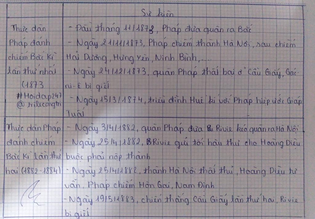 Lập niên biểu thực dân Pháp đánh chiếm Bắc Kì lần thứ nhất (`1873`) và lần thứ hai (`1882` `-` `1884`)