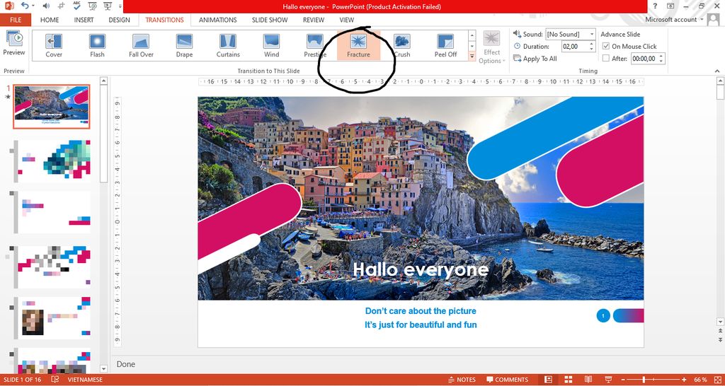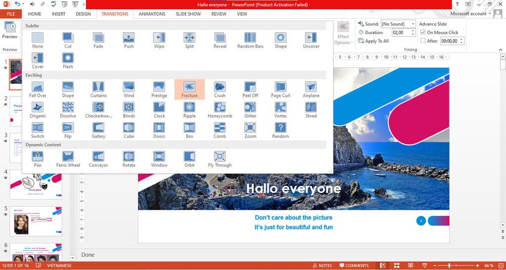 Mọi có thể gợi ý cho mình ít nhất 1 cách chuyển slide ngầu luòi trên PowerPoint đc ko?