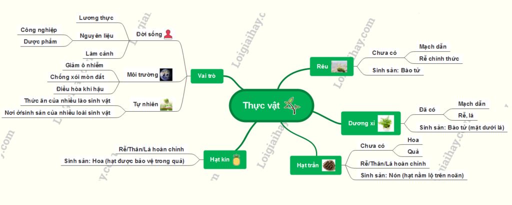 Mọi người ơi ai vẽ cho mình sơ đồ tư duy lớp 6 bài 34 Thực Vật kết nối tri thức với cuộc sống chi tiết ik ạ