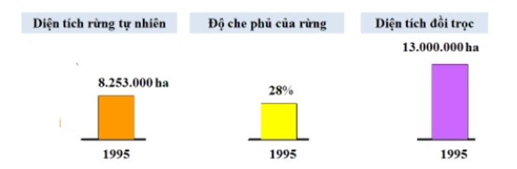 Nêu diện tích rừng tự nhiên , độ che phủ của rừng , diện tích đồi trọc nước ta năm 1995 và năm gần đây