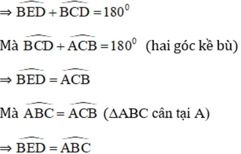 Tam giác ABC cân tại A có cạnh đáy nhỏ hơn cạnh bên, nội tiếp đường tròn (O).Tiếp tuyến tại B và C của đường tròn lần lượt cắt tia AC và tia AB ở D và E. CM: BC//DE
