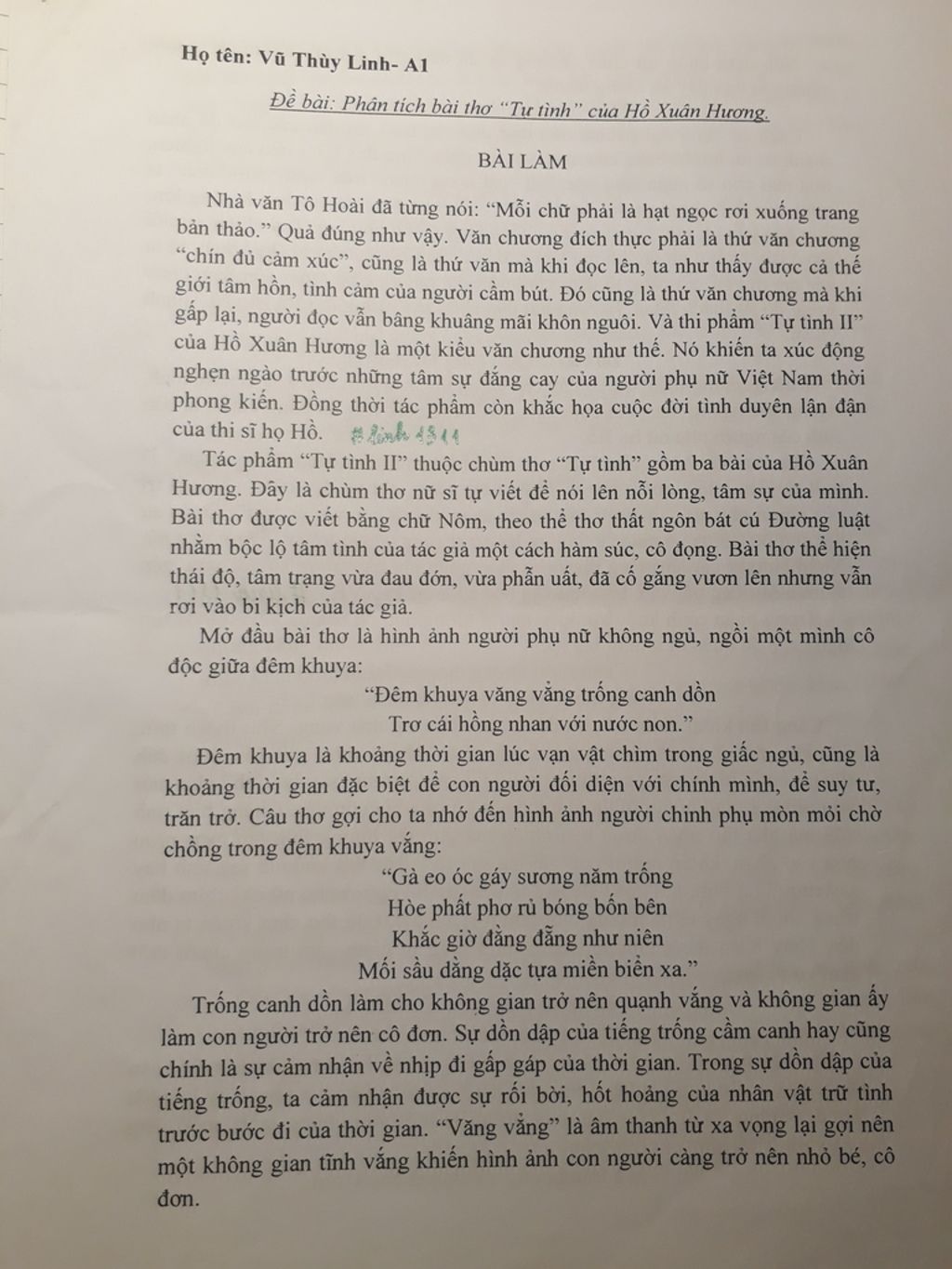 Tâm trạng của nhân vật trữ tình trong bài thơ tự tình 2 của Hồ Xuân Hương