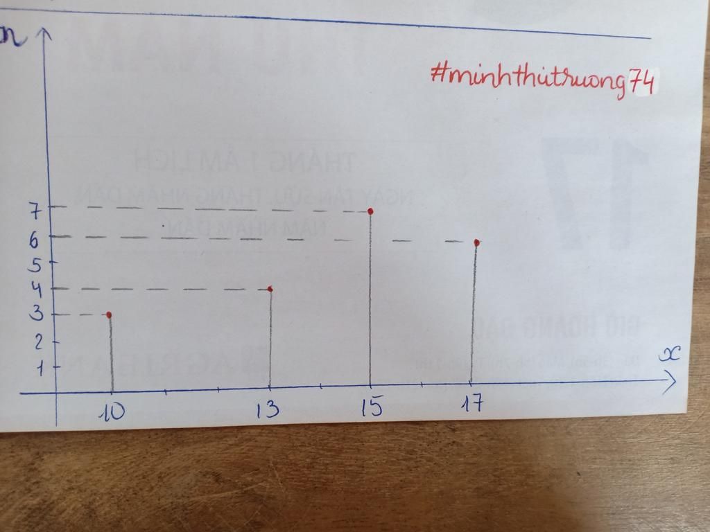 $\left[\begin{array}{ccc}giá trị (x) &10&13&15&17\\tần số (n)&3&4&7&6& N=20\end{array}\right]$