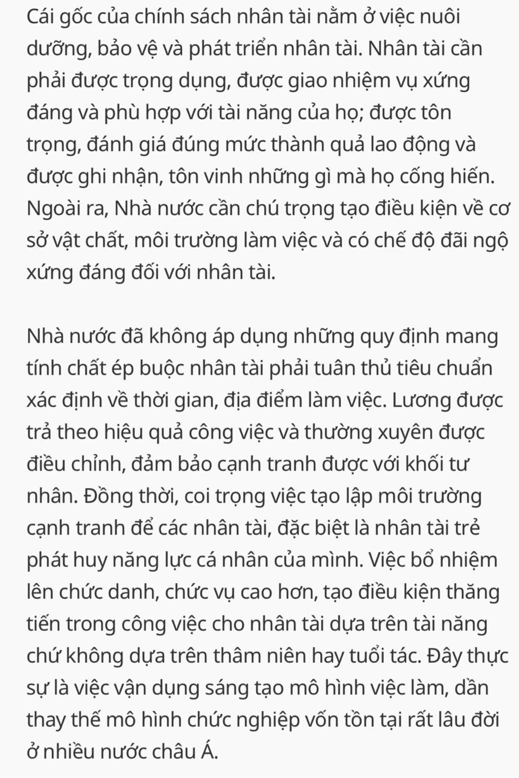viết 1 đoạn văn ngắn trình bày về chính sách cụ thể để khuyến khích người tài trong thời đại ngày nay