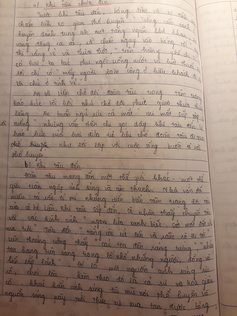 Viết đoạn văn nói về tâm trạng của nhân vật Liên khi tàu chưa đến, khi tàu đến và khi tàu đi.