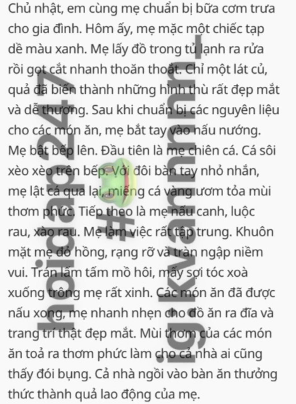 Tả hoạt động của người khi đó (làm vườn, trồng cây, nấu ăn, giảng bài, chăm sóc bệnh nhân)